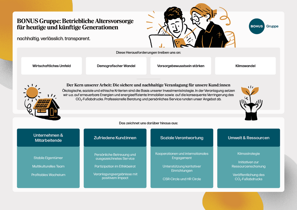 Der Ethikbeirat der BONUS Gruppe wurde im Februar 2017 gegründet – mit dem Ziel, ethische Fragestellungen und Herausforderungen zu diskutieren und zu bewerten. Insbesondere bei komplexen und kontroversen Themen zeigt der Beirat auf, wie moralische Werte und Prinzipien bei Entscheidungen berücksichtigt werden können. Aufgrund der zahlreichen neuen europäischen Regulierungen im Bereich ESG setzt der Beirat aktuell hier einen Schwerpunkt.